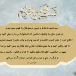هر چه می توانید در تحصیل علوم جدی و کوشا و در اخلاق و اعمال و کردار نیک کوشش کنید که برای آتیه میهنتان افتخارآفرین باشید. و در احترام به پدران و مادران و معلمان…