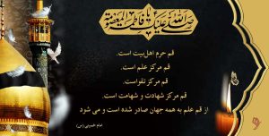 قم حرم اهل بیت است قم مرکز علم است قم مرکز تقواست قم مرکز شهادت و شهامت است از قم علم به همه جهان صادر شده است و می شود